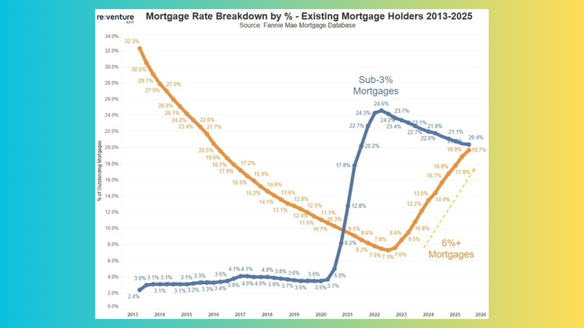 At the time, one stat stood out: 72% of all mortgages were originated below 4%. That massive wave of cheap money kept millions of owners rooted in place, unwilling to trade a 3% loan for one twice as high.